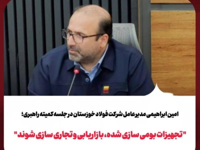 تجهیزات بومیسازیشده، بازاریابی و تجاریسازی شوندمدیرعامل شرکت فولاد خوزستان در جلسه عالی کمیته راهبری این شرکت، ضمن تش...